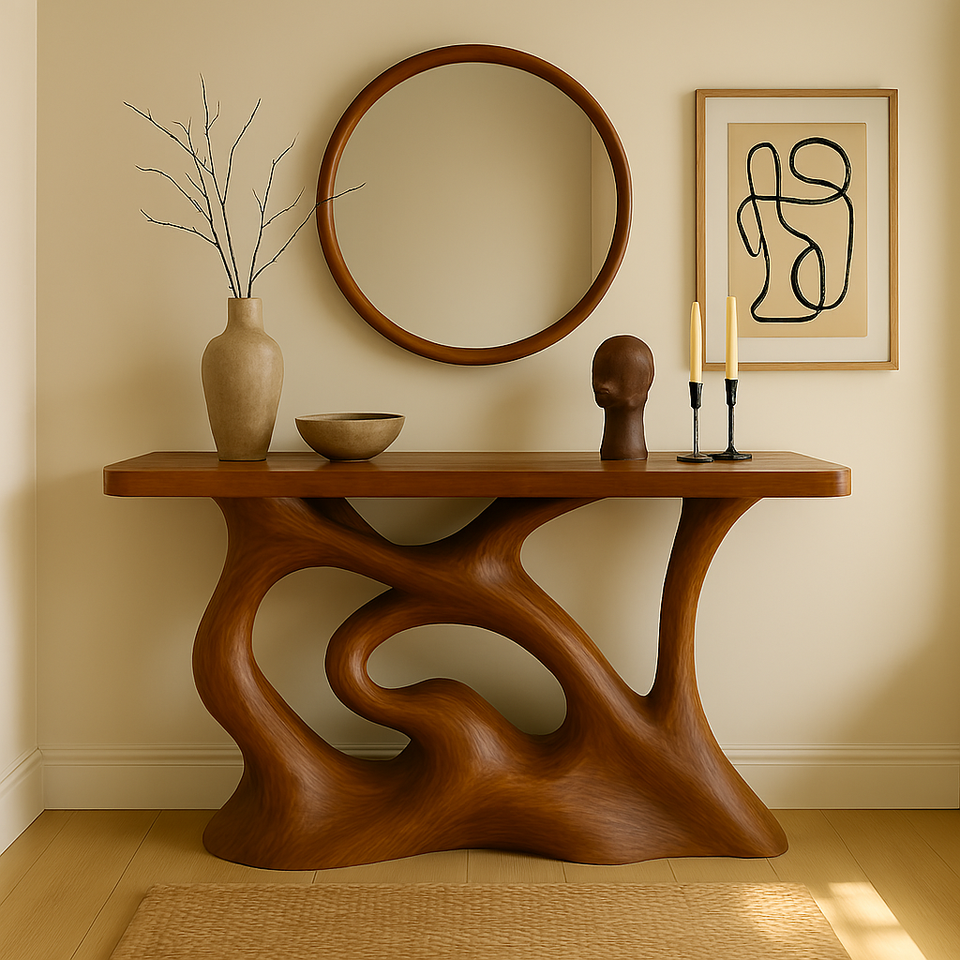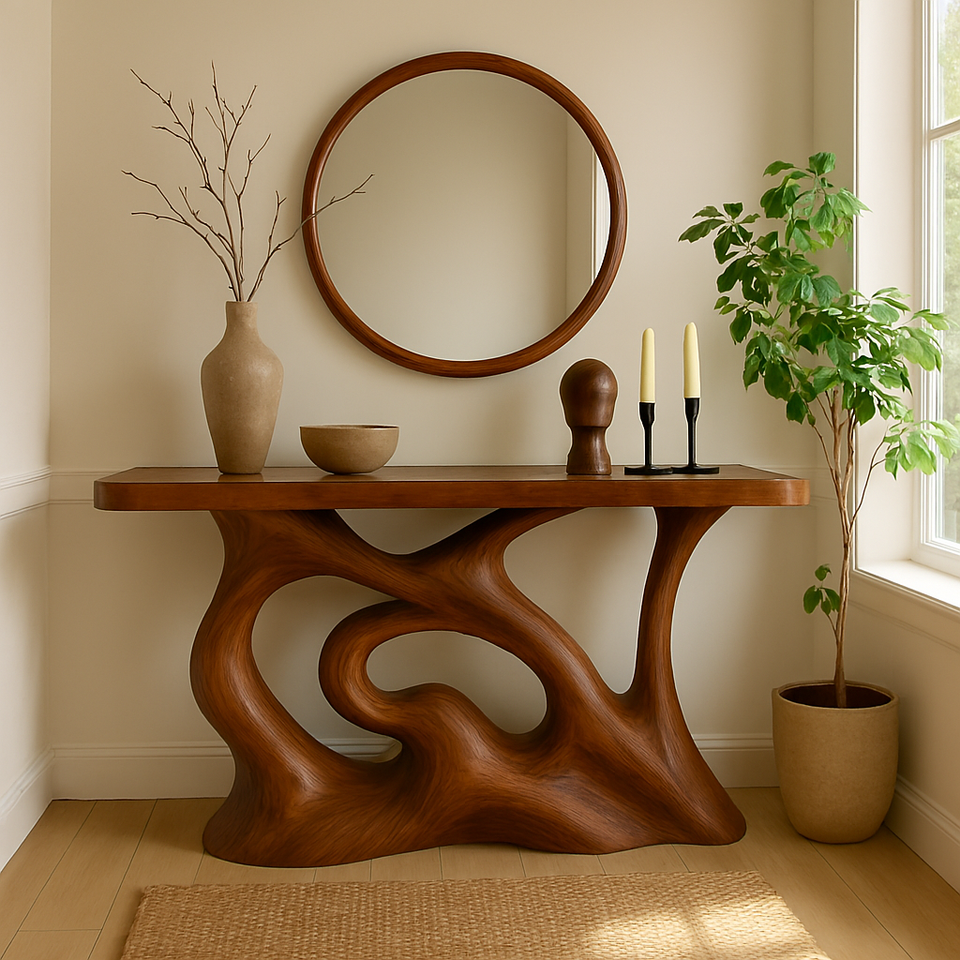 โต๊ะคอนโซลไม้เนื้อแข็งสไตล์โมเดิร์นรัสติก งานแฮนด์เมด โต๊ะทรงแคบ สำหรับโรงแรม ทางเข้าบ้าน อพาร์ทเมนท์ ห้องนั่งเล่น