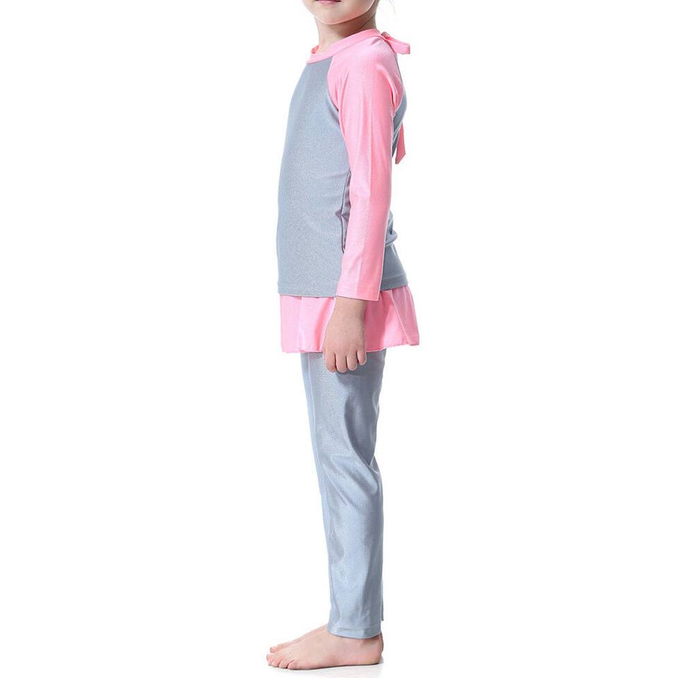 OEM Modest Islamic Kids Swimwear 2-Piece Set Summer Beach Bathing Suit Arabic Children Beachwear Front Logo for Muslim Girls