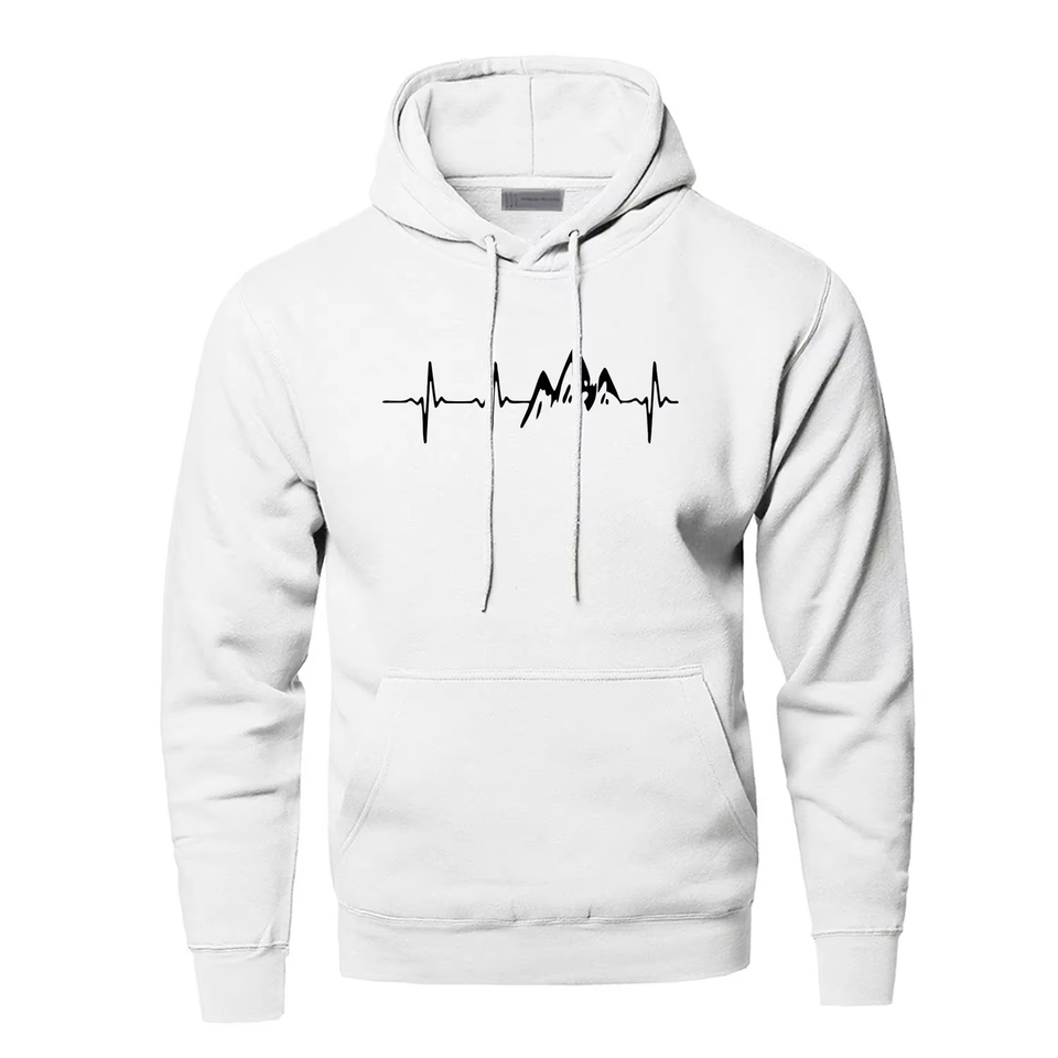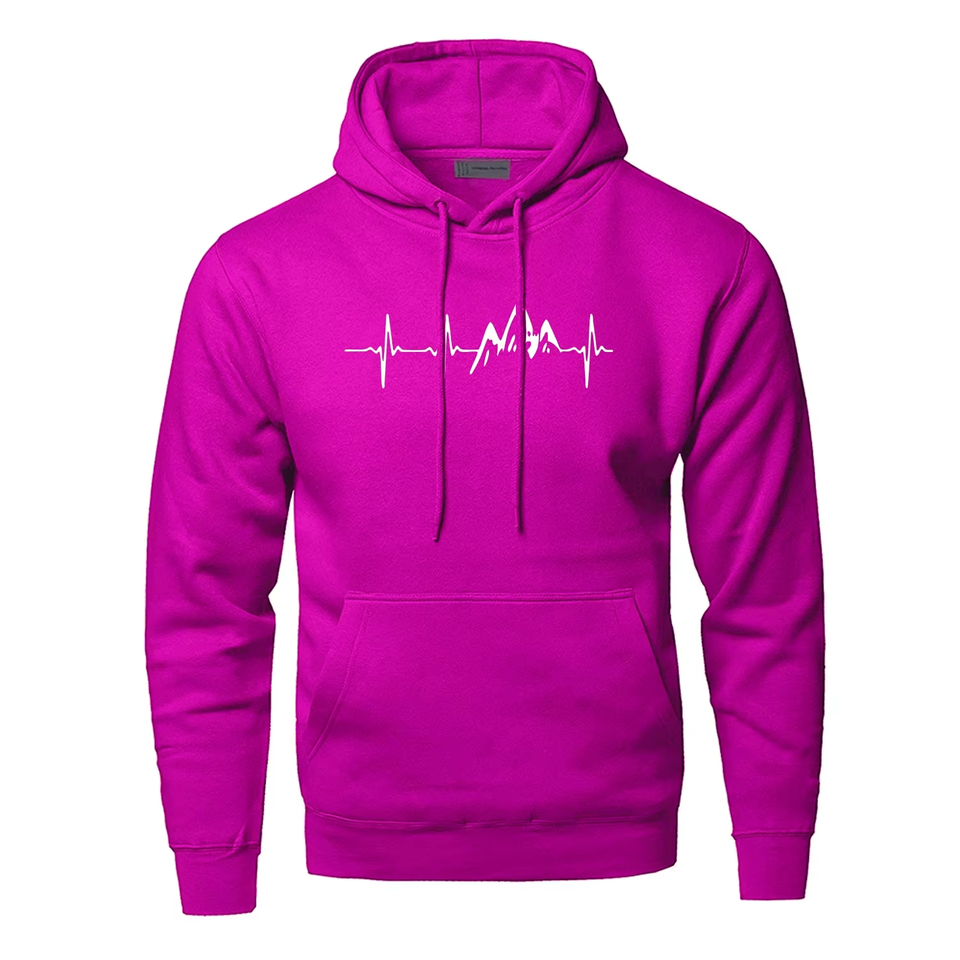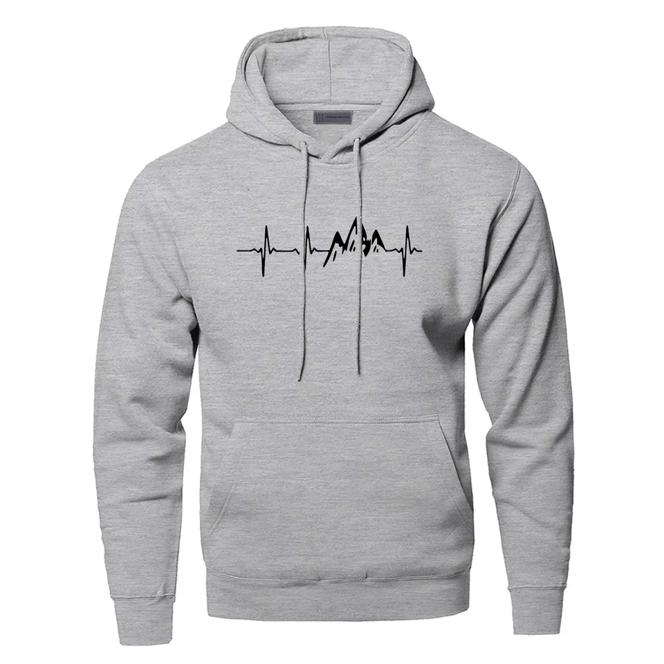 เสื้อฮู้ดสวมหัวแขนยาวของผู้ชาย OEM ภูเขาการเต้นของหัวใจสีพื้นปักลายสำหรับฤดูหนาวฤดูใบไม้ร่วง