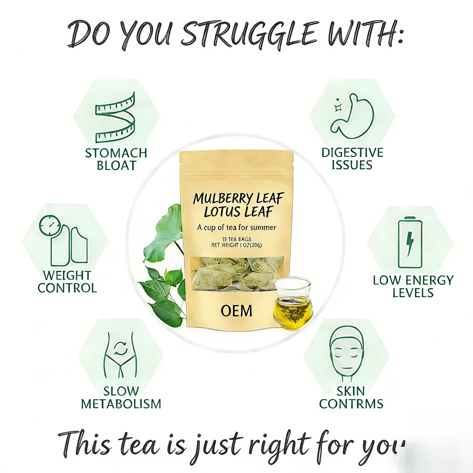 ชาสมุนไพรใบหม่อนใบบัว OEM สำหรับฤดูร้อน 15 ซองชา 30 กรัม สดชื่น เบาบาง