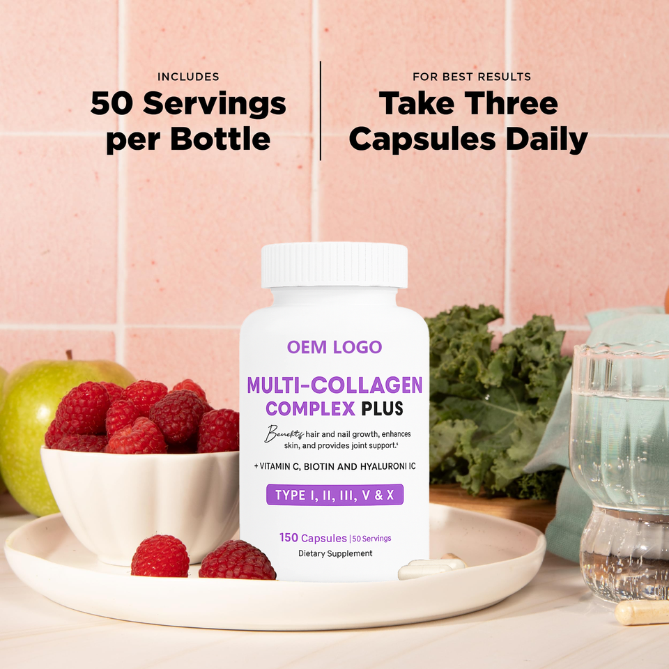 OEM แคปซูลคอลลาเจนหลายเม็ดสำหรับผู้ใหญ่วิตามินและเปปไทด์ที่มีความซับซ้อนไม่เหมาะสำหรับหญิงตั้งครรภ์