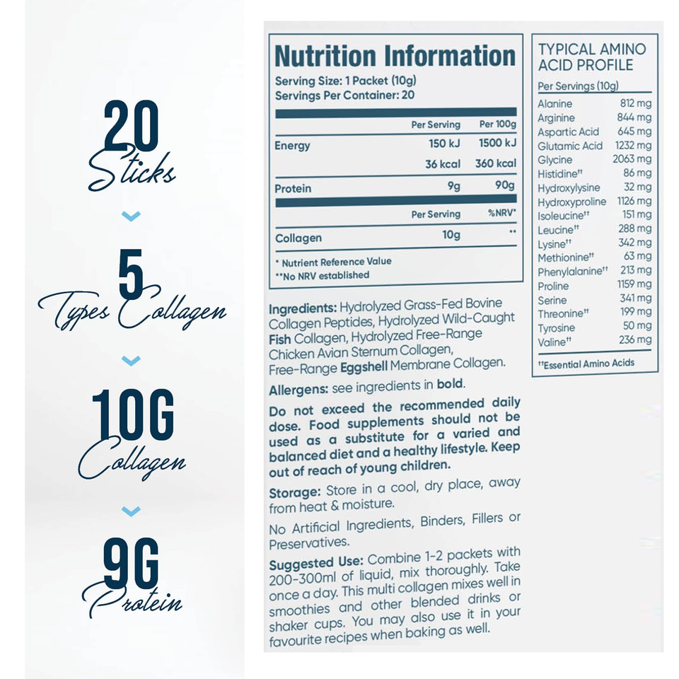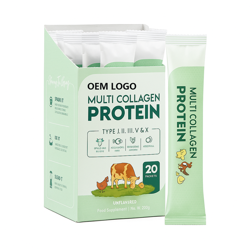 ผงโปรตีนคอลลาเจนหลายชนิด OEM ผสมกรดไฮยาลูโรนิกและวิตามินซี สำหรับเสริมสร้างความงามของผิวและบำรุงเส้นผม