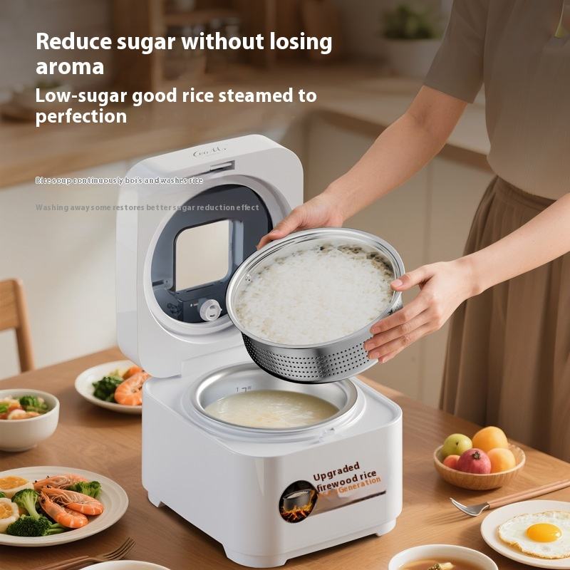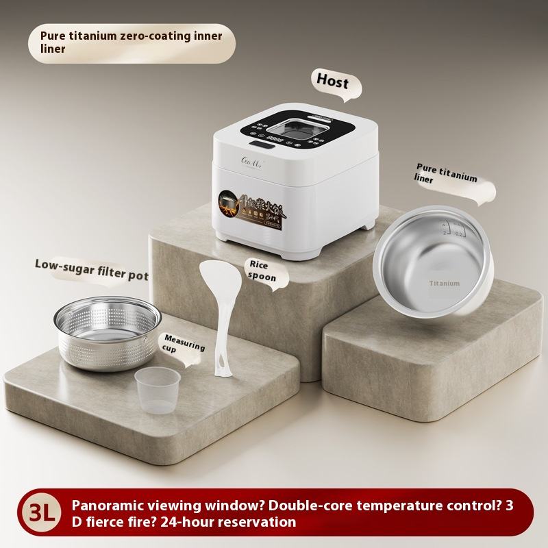 หม้อหุงข้าวไฟฟ้าอเนกประสงค์ OEM หม้อในทำจากไทเทเนียมแท้ ตัวเครื่องทำจากสแตนเลส พร้อมช่องแยกน้ำซุป/ข้าว ความจุ 3 ลิตร