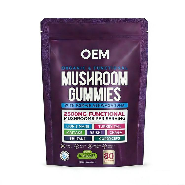 เยลลี่เห็ด OEM 2500 มก. ผสมอัชวากันธาและเห็ด 8 ชนิด บำรุงสมอง เสริมภูมิคุ้มกัน บรรเทาความเครียด ปราศจากน้ำตาล สำหรับเด็ก