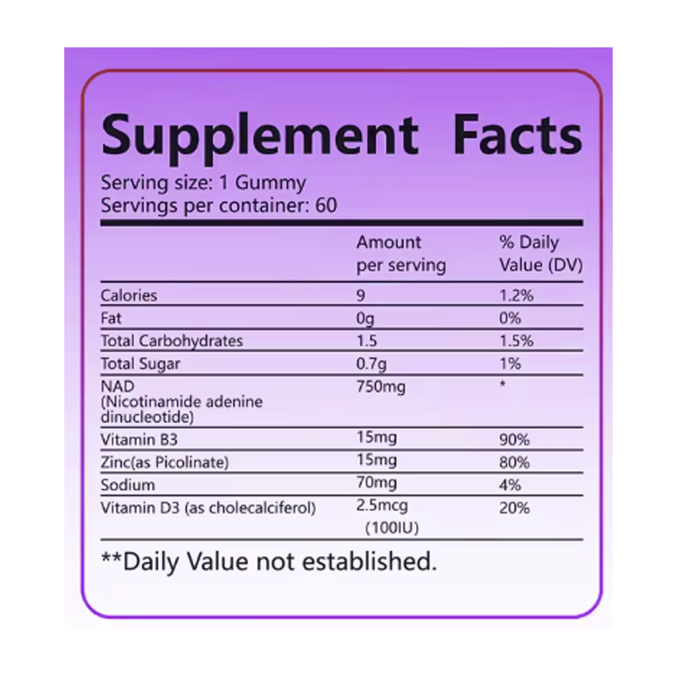 อาหารเสริม OEM NAD+ แบรนด์ส่วนตัว วิตามินบี3 คอลลาเจนไฮโดรไลซ์ สมุนไพร ปราศจากน้ำตาล แอนตี้เอจจิ้ง เยลลี่ NAD ช่วยเพิ่มประสิทธิภาพเซลล์