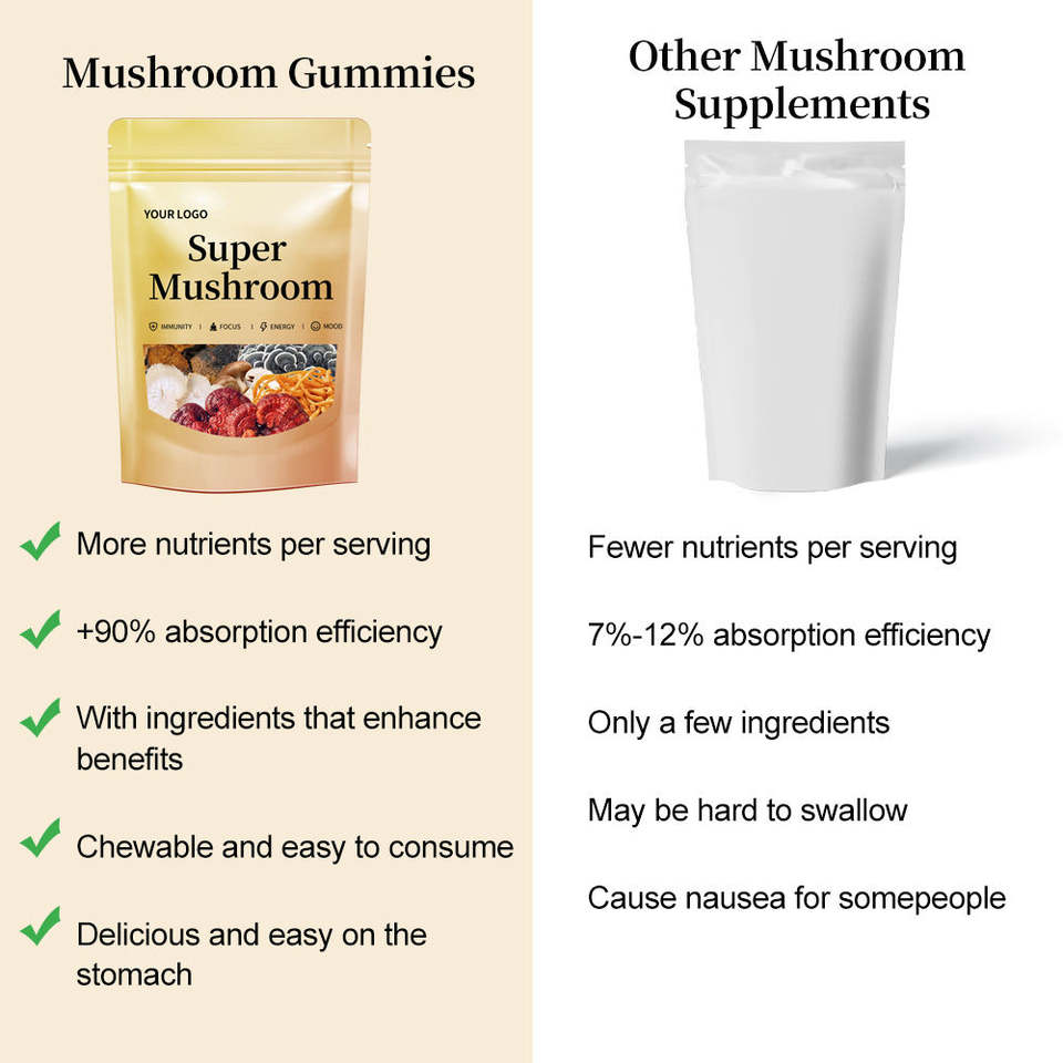 เยลลี่เห็ดวีแกนธรรมชาติ OEM สำหรับการดูแลสุขภาพผู้ใหญ่ - อาหารเสริมเสริมภูมิคุ้มกัน