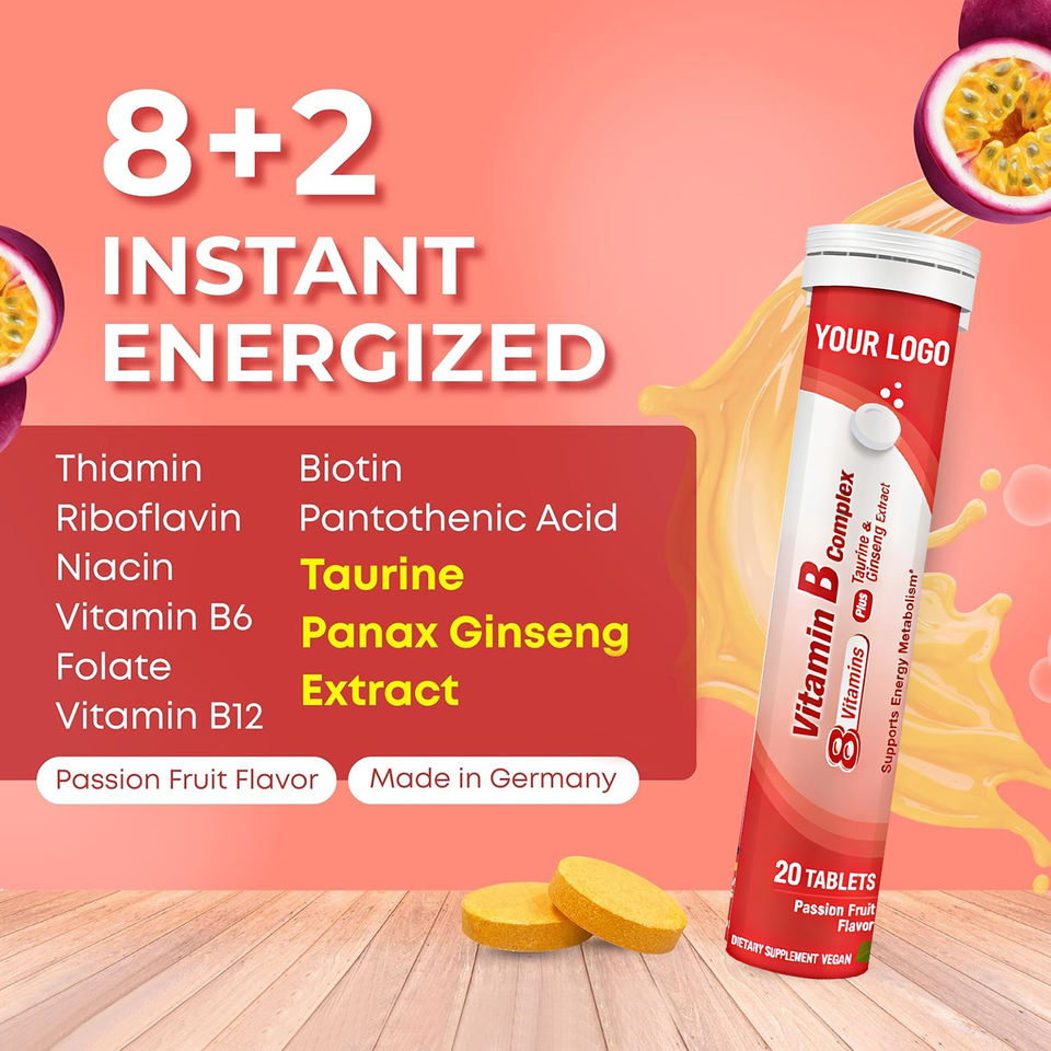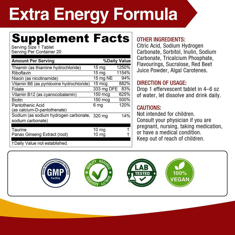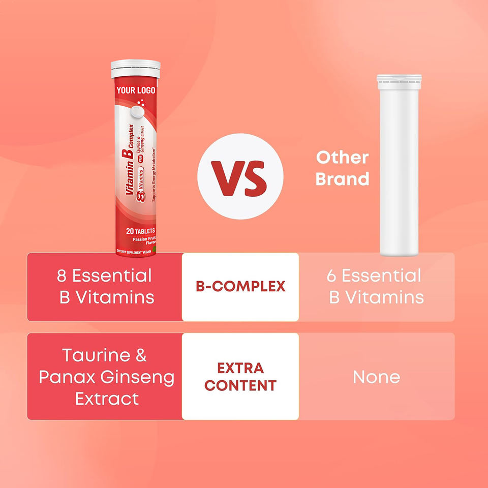 แท็บเล็ตปล่อยวิตามินบีจากธรรมชาติแท็บเล็ตให้พลังงานทันทีวิตามินบีจากโสมทอรีน