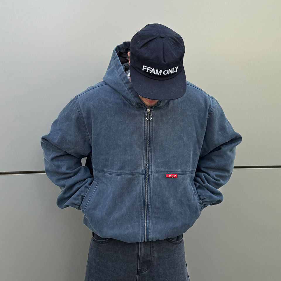 แจ็กเก็ตมีฮู้ดผ้าคอตตอน100% 500GSM แจ็คเก็ตผ้าหนามีซิปตัวดึงซิปโอเวอร์ไซส์