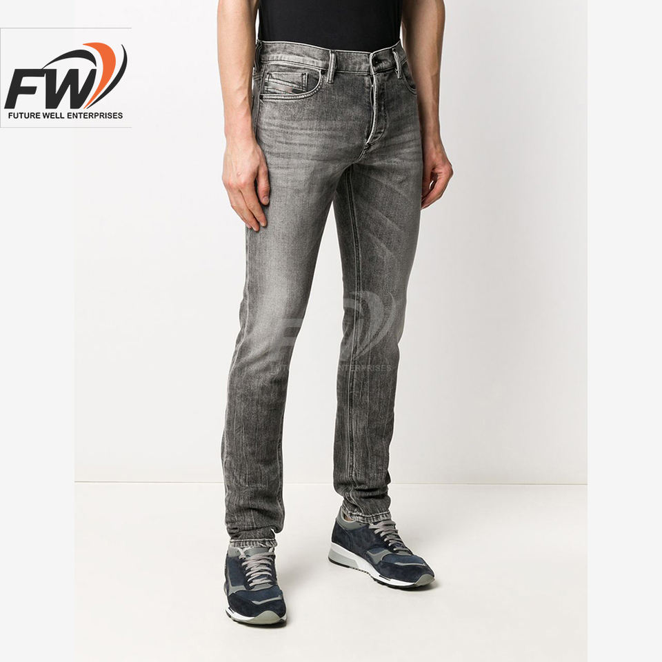 กางเกงยีนส์ผู้ชายรุ่นใหม่ OEM ดีไซน์ทันสมัย ตกแต่งด้วยลายพิมพ์และคริสตัล น้ำหนักมาก เอวสูง คุณภาพพรีเมียม สำหรับผู้ชาย