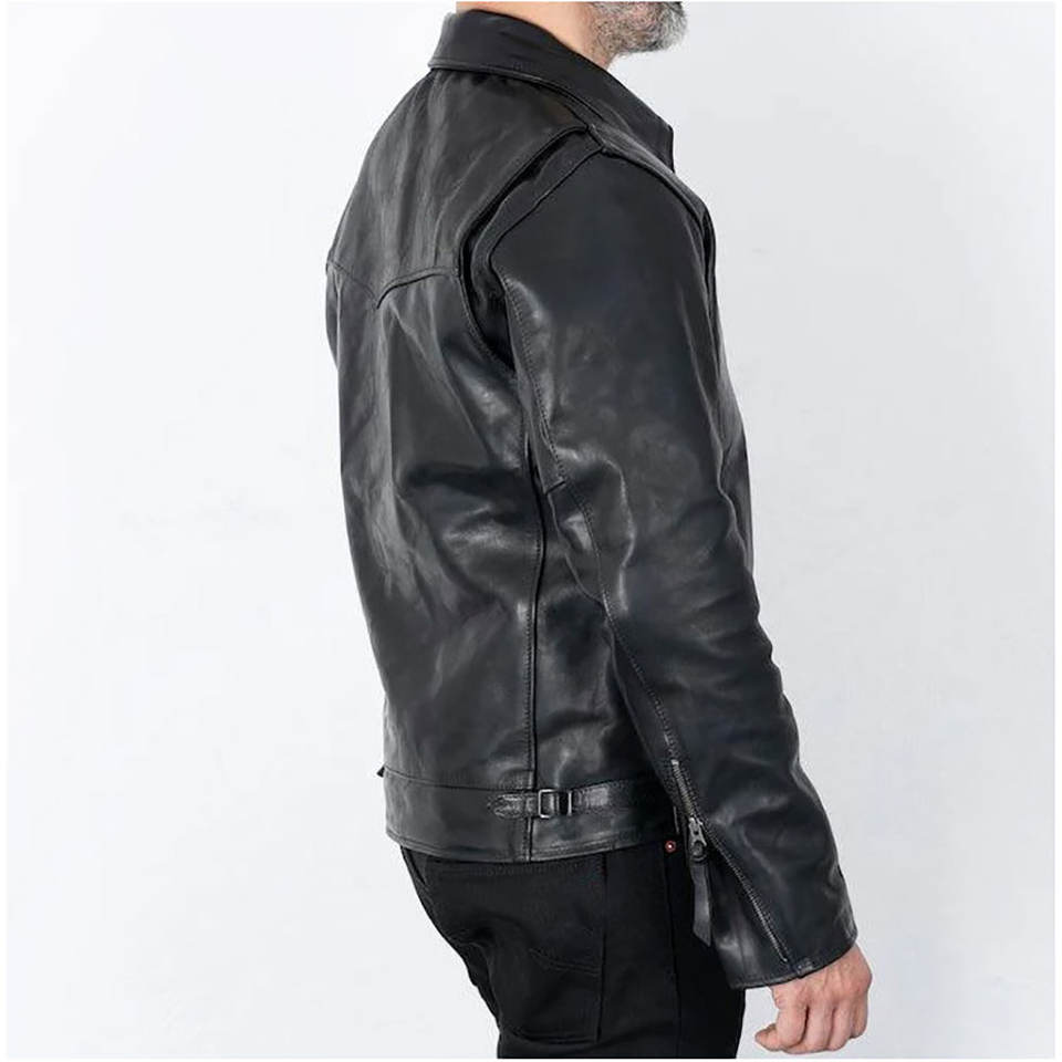 แจ็กเก็ตมอเตอร์ไซค์แจ็กเก็ตสีดำคุณภาพสูงสไตล์ย้อนยุค