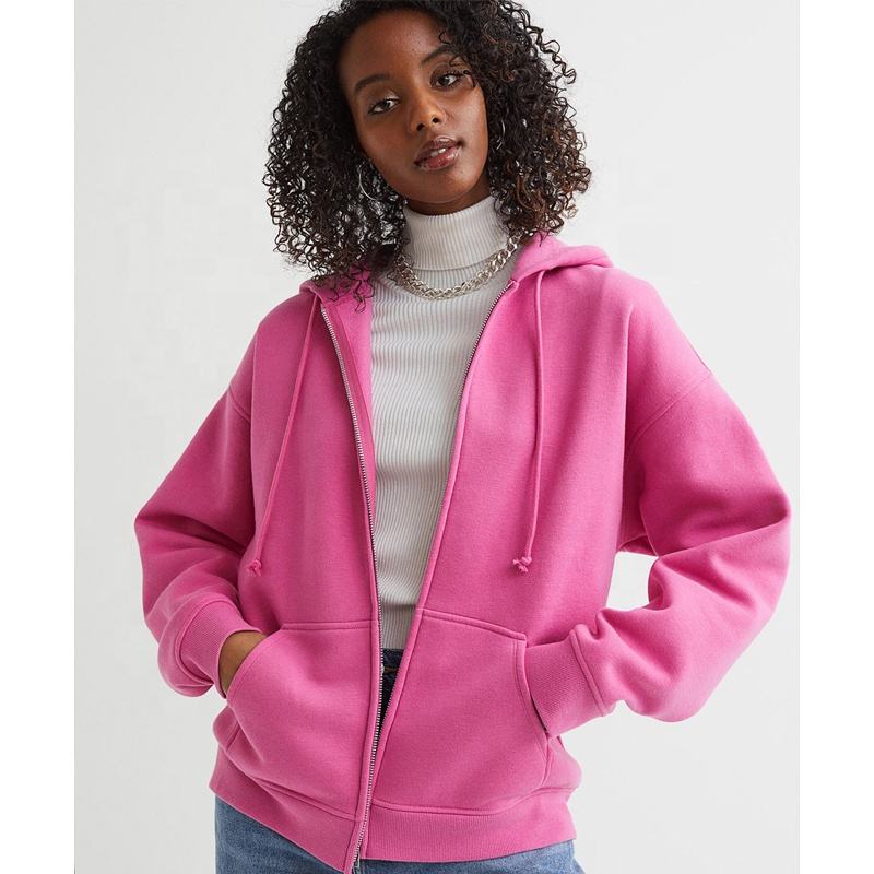 เสื้อมีฮู้ดมีซิปสำหรับผู้หญิงเสื้อมีฮู้ดผ้าคอตต้อนแฟชั่นแบบผูกเชือก
