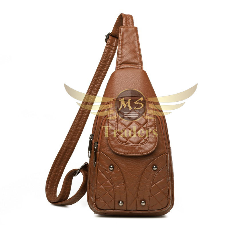 กระเป๋าคาดไหล่สายเดี่ยวของผู้หญิง,กระเป๋าคาดอกกันน้ำวินเทจมัลติฟังก์ชันหนัง PU ดีไซน์ใหม่