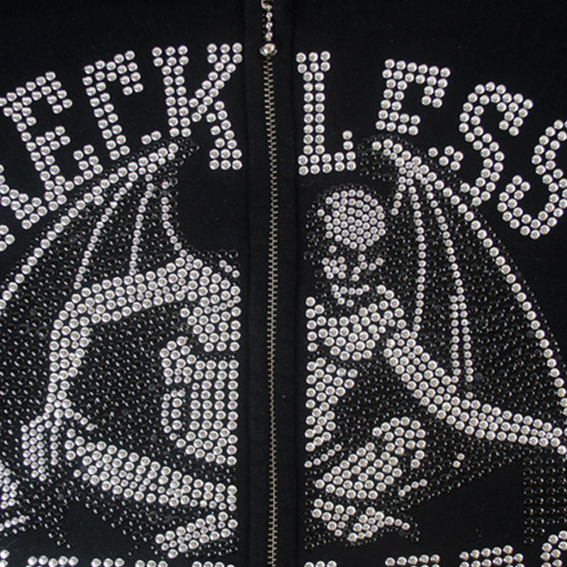 เสื้อฮู้ดประดับเพชรเทียมแบบซิปเต็มตัว