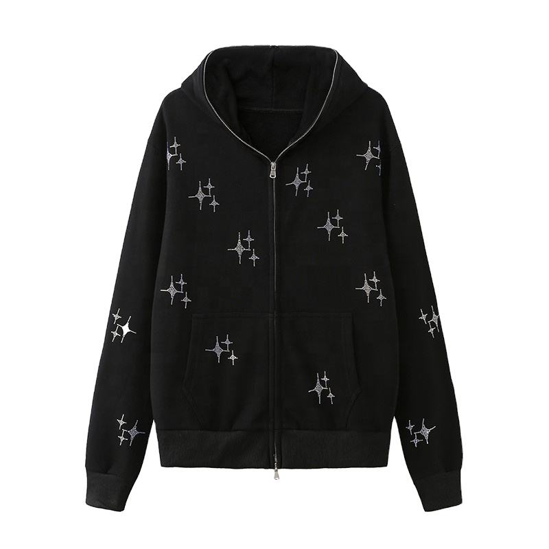 ชื่อสินค้า:เสื้อฮู้ดประดับเพชรเทียมแบบซิปเต็มตัว