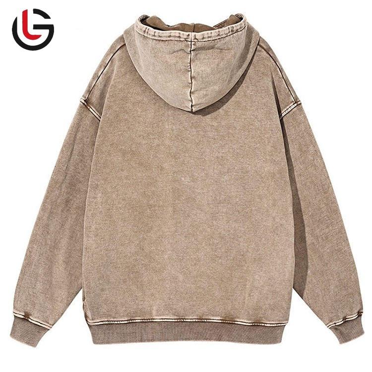 เสื้อสเวตเตอร์มีฮู้ดสำหรับผู้ชายเสื้อแนวสตรีทแบบสวมหัวมีฮู้ดผ้าคอตตอนย้อมสีกรดสำหรับผู้ชายวินเทจสไตล์ใหม่ OEM