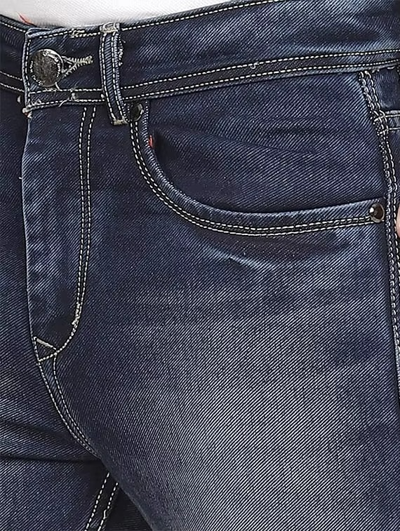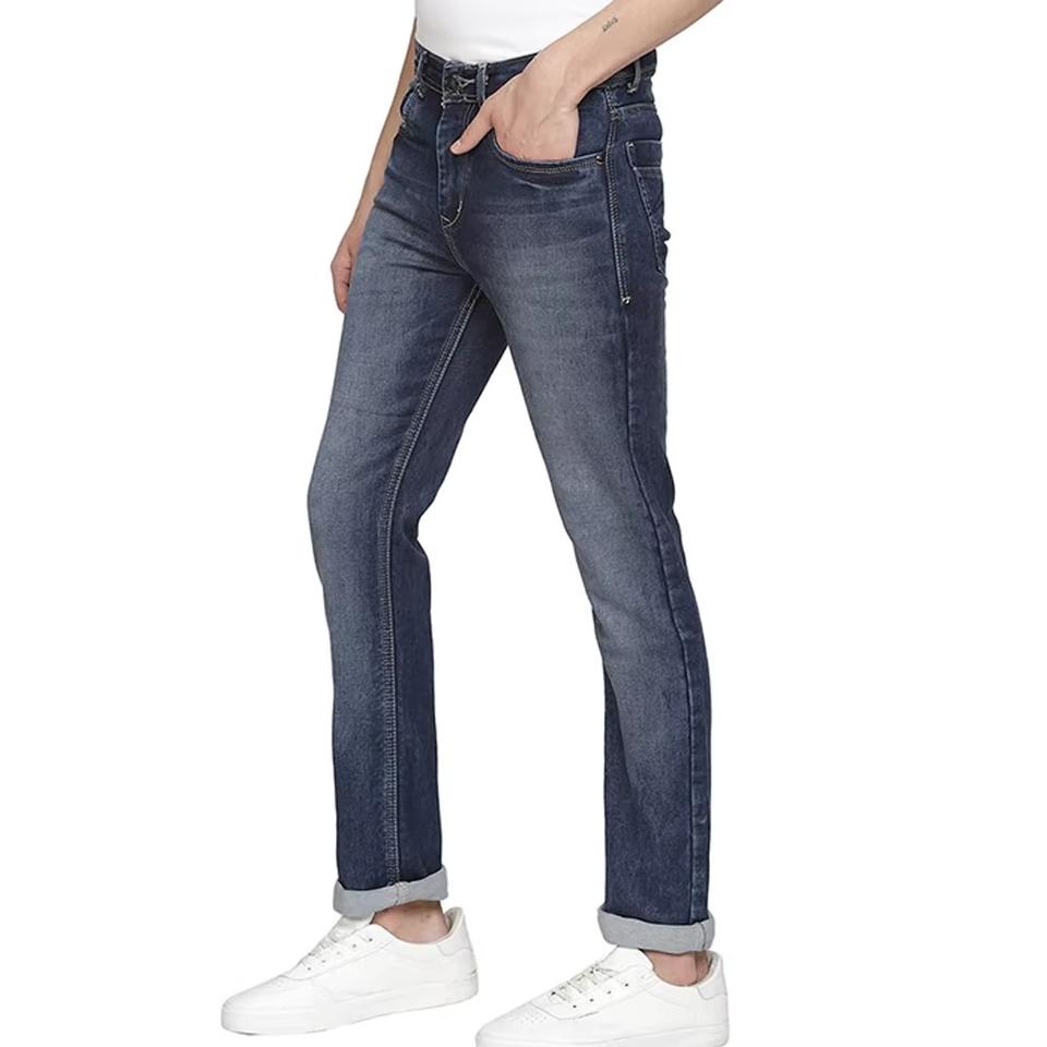 กางเกงยีนส์เดนิมดีไซน์ทันสมัยสไตล์ OEM สีน้ำเงินเข้ม ขอบขาพับได้ ทรงคลาสสิก 5 กระเป๋า ใส่สบาย สไตล์สตรีทแวร์