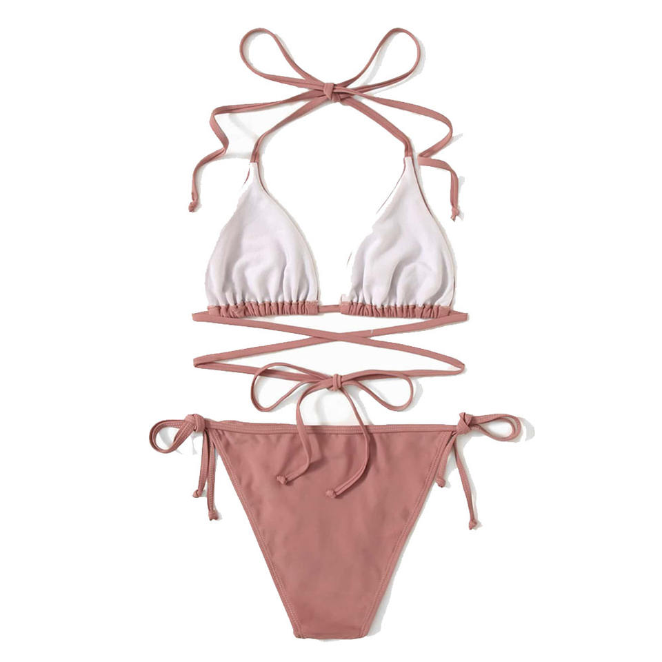 ชุดบิกินี่สองชิ้นสำหรับผู้หญิงผ้าสแปนเด็กซ์/ โพลีเอสเตอร์แห้งเร็วสีพื้นระบายอากาศได้ดีสินค้าใหม่