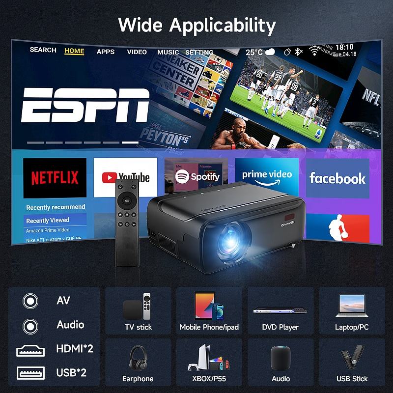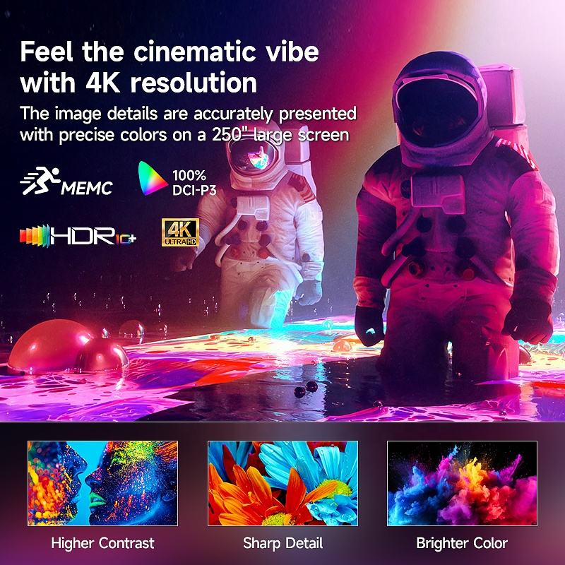 โปรเจคเตอร์พกพาสำหรับใช้งานกลางแจ้ง รองรับ Android TV สมาร์ททีวี 4K พร้อมระบบออโต้โฟกัส/คีย์สโตน รุ่นใหม่จากโรงงาน (OEM) ความสว่าง 10000 ลูเมนส์ พร้อม WiFi