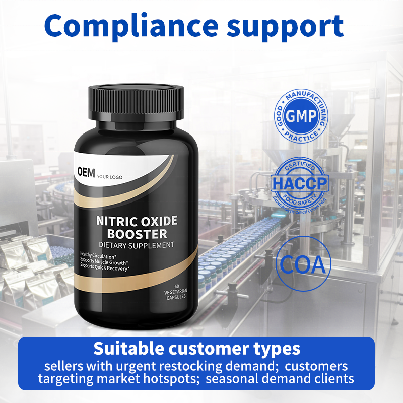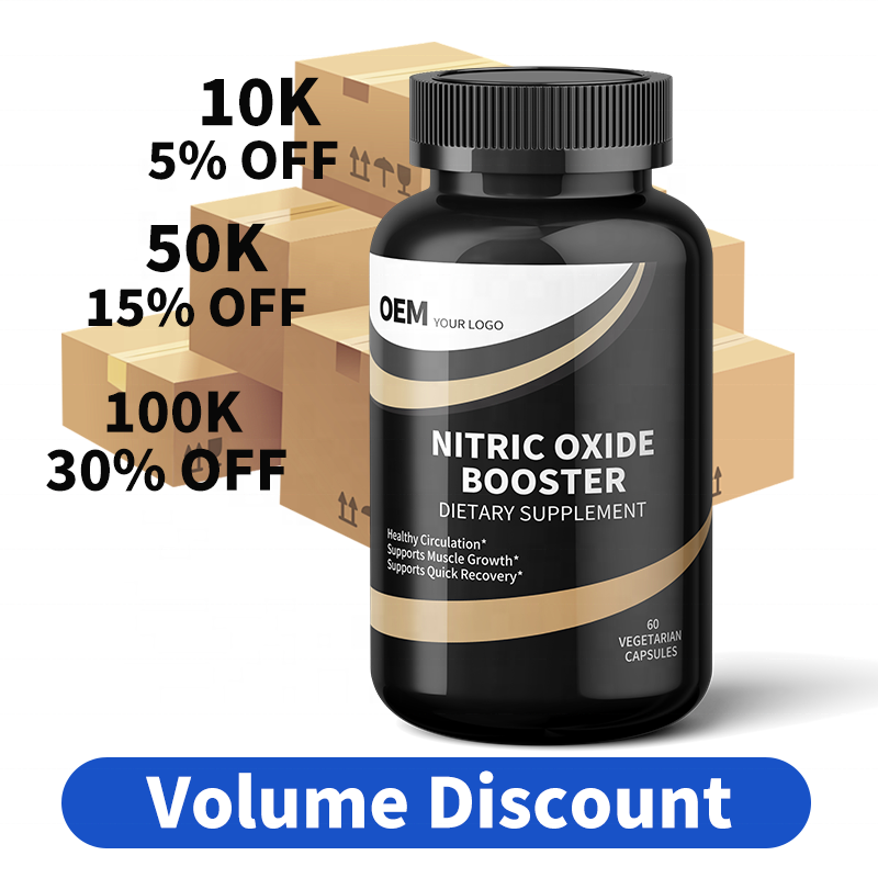 แคปซูลเสริมนิตริกออกไซด์ OEM สำหรับการเจริญเติบโตของกล้ามเนื้อและการไหลเวียนโลหิต จัดหาอย่างมั่นคงในระยะยาวสำหรับผู้ค้าระหว่างประเทศ
