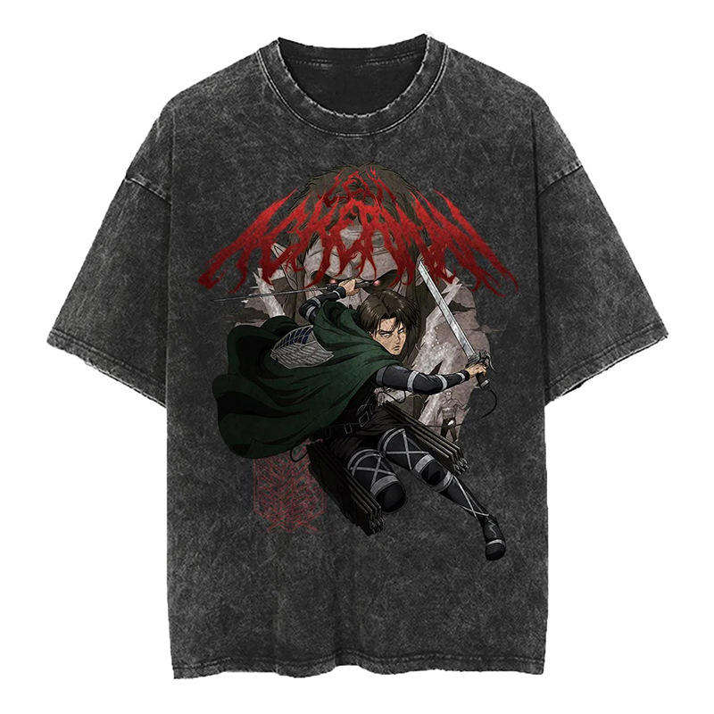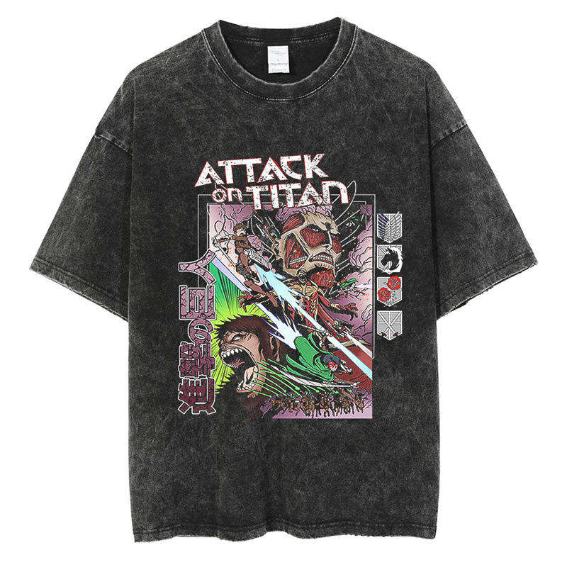 เสื้อยืดอะนิเมะถักผ้าฝ้าย100% oem/odm เสื้อยืดลายอะนิเมะผ้าซักเป็นกรดมีลายกราฟิกที่กำหนดเองเป็นมิตรกับสิ่งแวดล้อม
