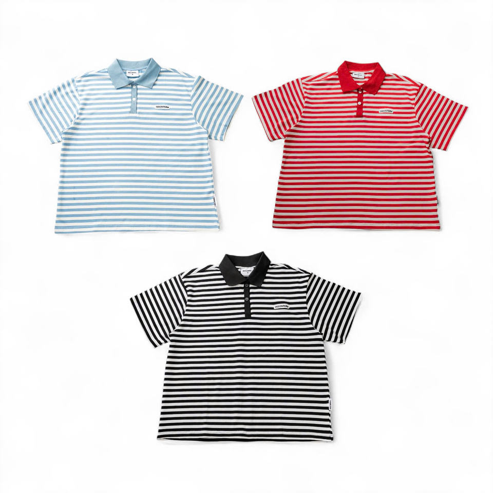 เสื้อโปโลผ้าฝ้ายบ็อกซี่100% สำหรับผู้ชายและผู้หญิงเสื้อโปโลสไตล์ย้อนยุคพิมพ์ลายตามสั่ง