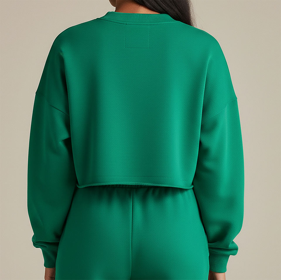 เสื้อครอปท็อปผ้าฝ้ายเฟรนช์เทอร์รี่ 100% แบบ OEM/ODM คอกลมสำหรับผู้หญิง พิมพ์โลโก้แบบพัฟตามสั่ง เสื้อสเวตเชิร์ตน้ำหนักเบา ระบายอากาศได้ดี
