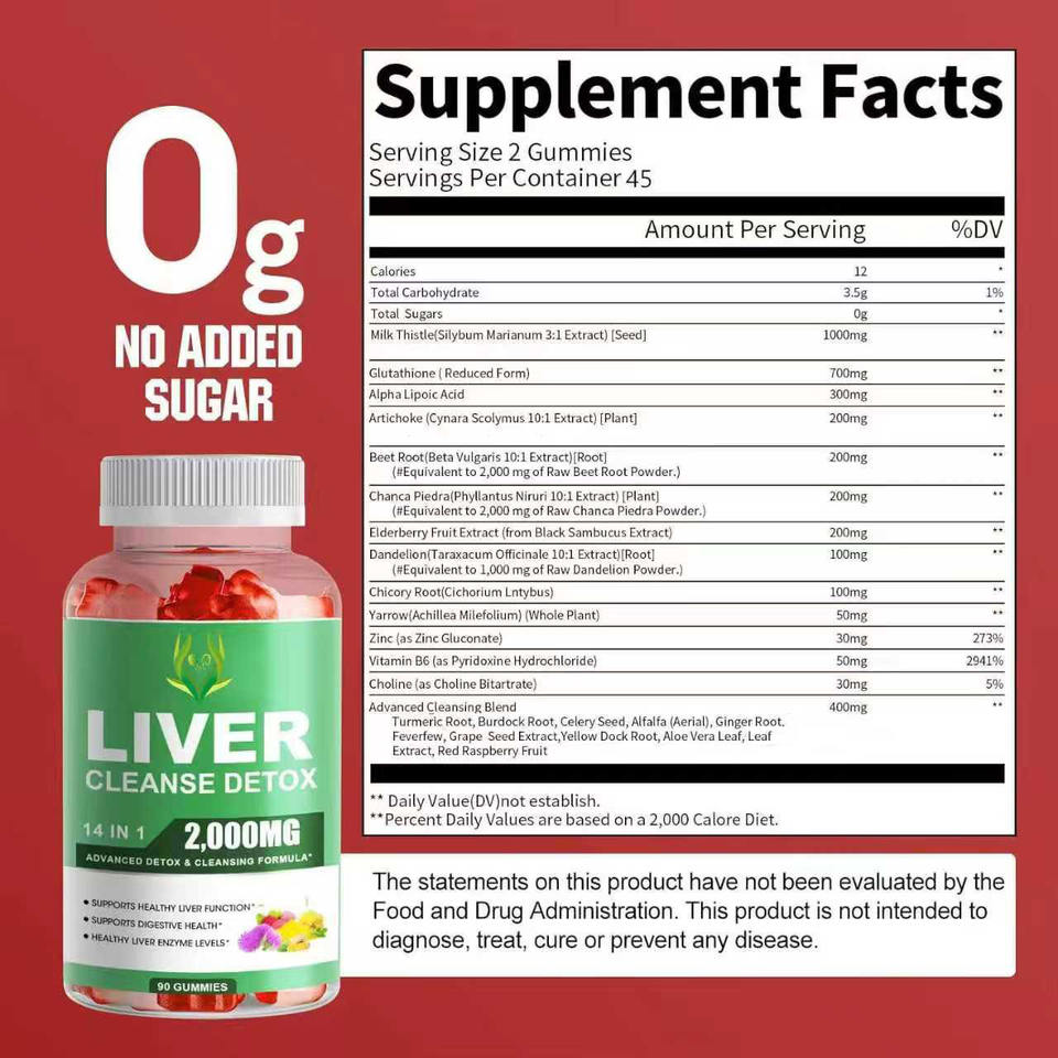 OEM ODM 14 in 1 วิตามินกัมมี่ล้างพิษตับ 2000 มก. สารสกัดจากมิลค์ทิสเซิลและอาร์ติโชค ช่วยระบบย่อยอาหารและลดน้ำหนัก