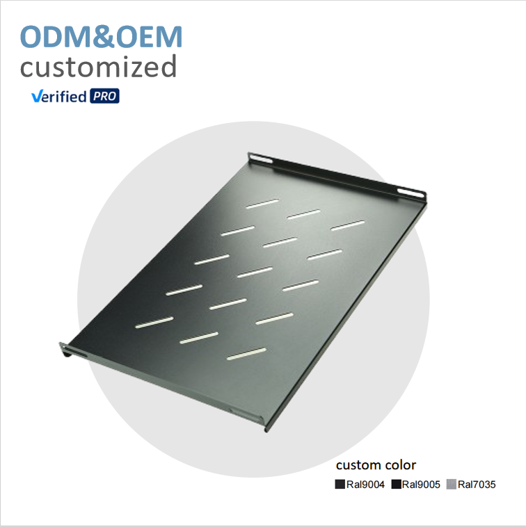ถาดวางแบบยึดติดสำหรับแร็คเซิร์ฟเวอร์ OEM ODM ขนาด 19 นิ้ว 1U รับน้ำหนักได้ 50 กก. ผลิตจากเหล็ก SPCC รีดเย็น มีสินค้าในสต็อก