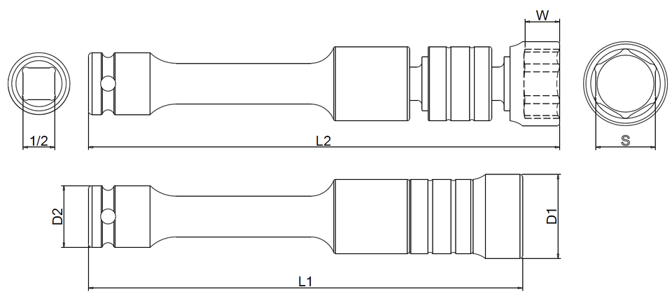 OEM ODM 3-Way ซ็อกเก็ต1/2ผลกระทบที่มีประสิทธิภาพ "พร้อมแถบขยายผู้จำหน่ายไต้หวัน