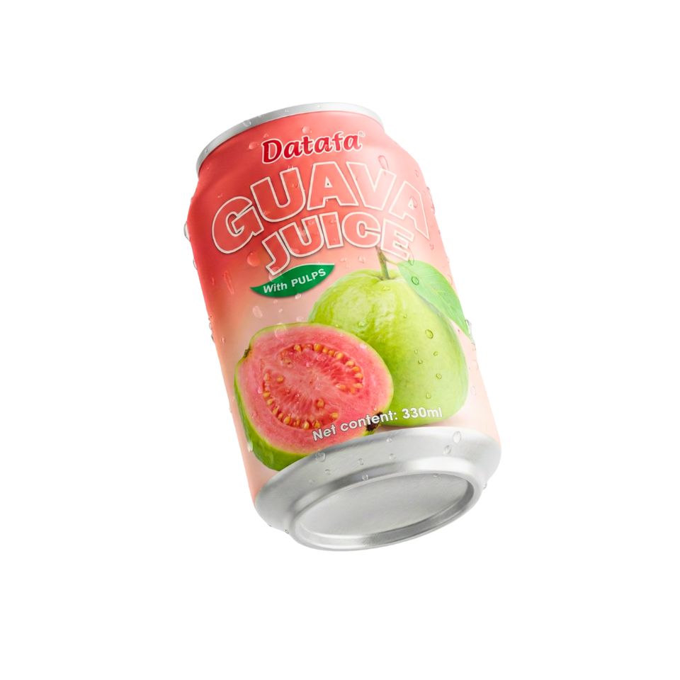 น้ำผลไม้กัววาสีชมพู บรรจุกระป๋องมาตรฐาน 330 มล. ผลิตแบบ OEM/ODM คุณภาพสูง น้ำผลไม้แท้ 100% รับผลิตแบรนด์ส่วนตัว