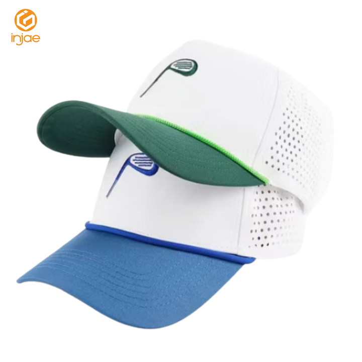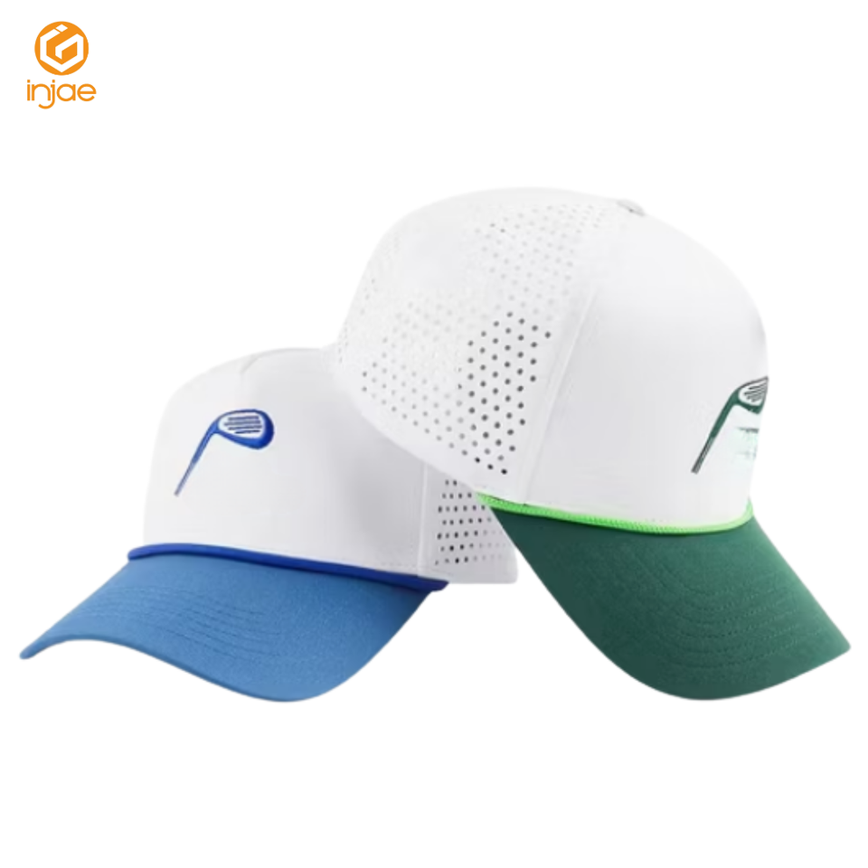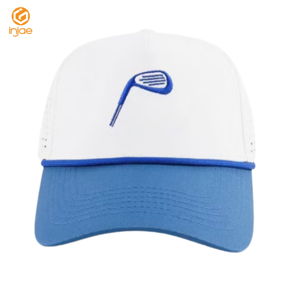 หมวกเล่นกอล์ฟกันน้ำติดด้วยเลเซอร์ขนาด5แผงผ้าโค้งดีไซน์แบบมีเอกลักษณ์ปักโลโก้ได้ตามต้องการ