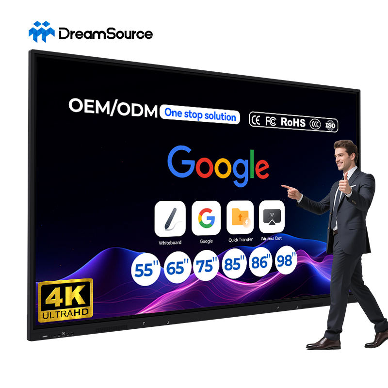 จอแสดงผล LCD ขนาด 65/75/85/86/98/110 นิ้ว แบบ OEM ODM ความละเอียด 4K UHD กระดานอัจฉริยะแบบอินเทอร์แอคทีฟ รองรับการสัมผัส 20-40 จุด อุปกรณ์การศึกษาแบบดิจิทัล