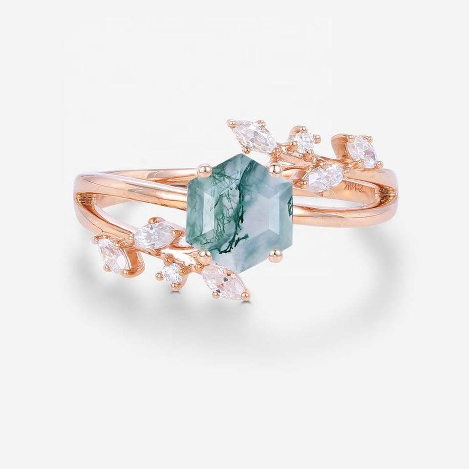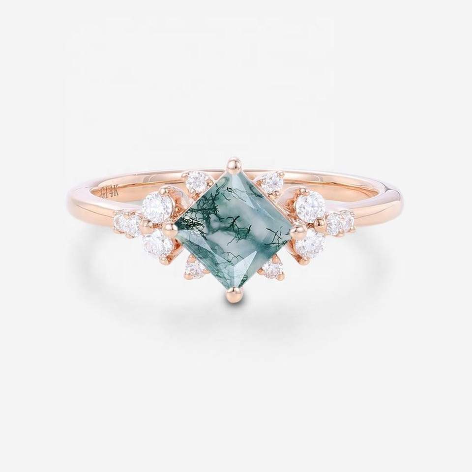 แหวนแต่งงานเงินแท้ 925 ประดับมอสอาเกต หรูหรา ชุบโรเดียม ผลิตโดยโรงงานโดยตรง ขายส่ง FBA รับผลิตแบบ OEM/ODM