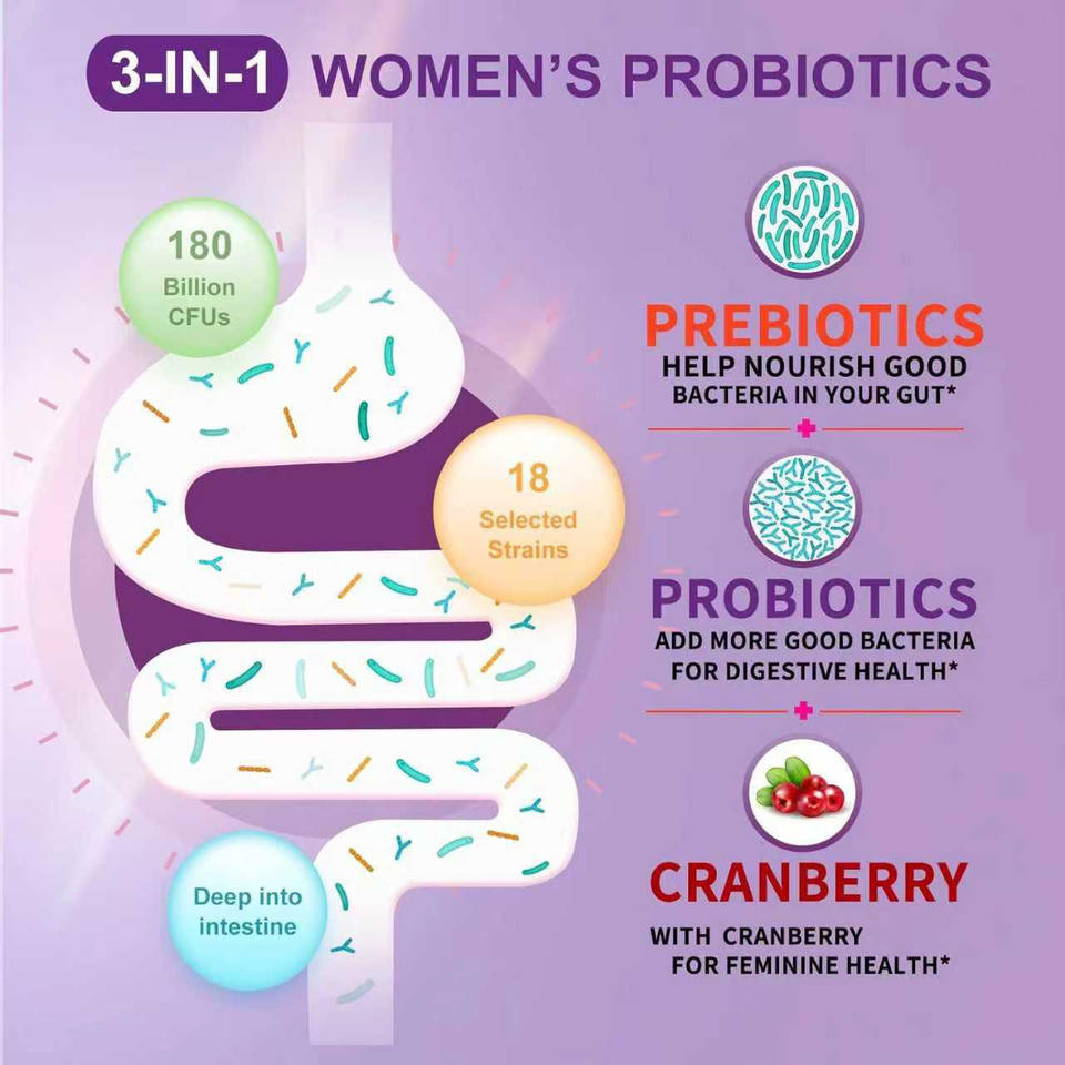 ส่วนผสมหลัก:กิจกรรมโปรไบโอติกทั้งหมด, พรีไบโอติกส์, แครนเบอร์รี