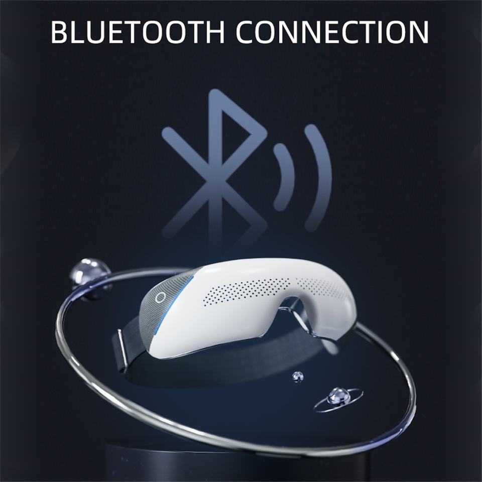 เครื่องนวดตาบลูทูธ OEM ODM พร้อมระบบทำความร้อน ถุงลมนวด และระบบสั่นสะเทือน สำหรับบรรเทาอาการไมเกรน ปรับแต่งการดูแลดวงตาได้