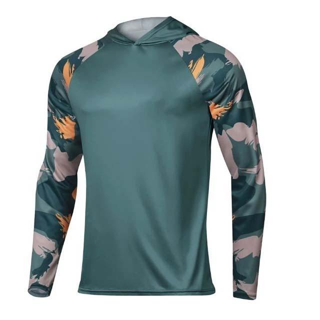 เสื้อตกปลาผ้าโพลีเอสเตอร์ระบายอากาศได้ดีมีฮู้ดแขนยาวมีฮู้ดขนาดพิเศษสำหรับใส่ตกปลาในฤดูร้อน
