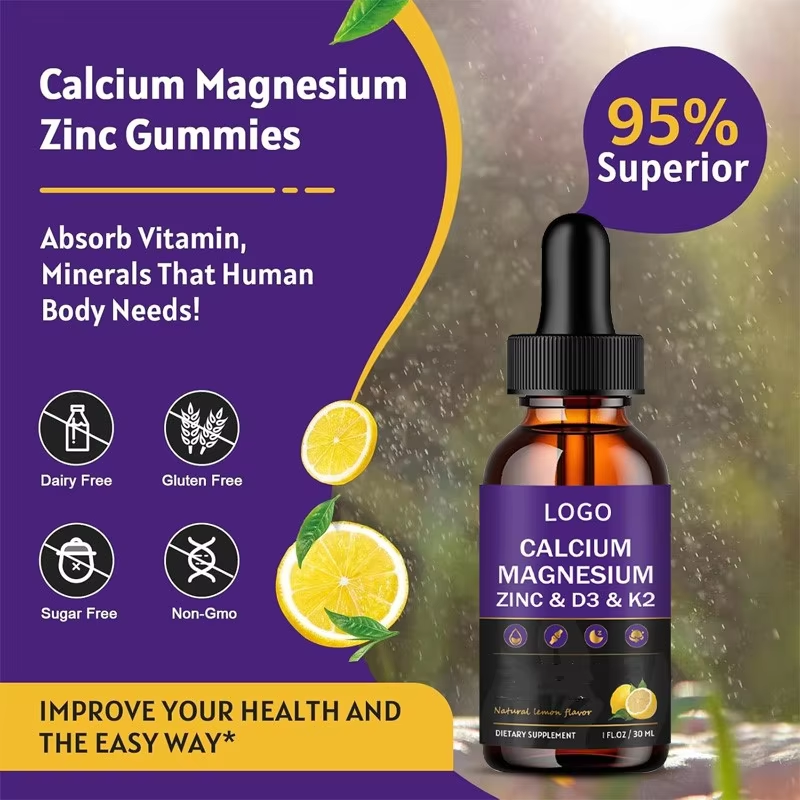 แคลเซียมแมกนีเซียมสังกะสีวิตามินหยดที่อุดมไปด้วยแคลเซียม D3สังกะสีสารสกัดจากโบรอนและมอส B6 K2