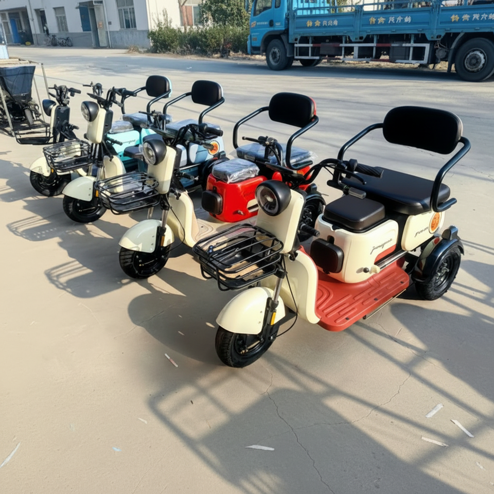 ผู้ผลิต OEM ODM จากจีน รถสามล้อไฟฟ้า 48V ความเร็วเดียว โครงเหล็กคาร์บอนสูง เบรกดรัม 600W ล้อ 300-8 นิ้ว สำหรับครอบครัว