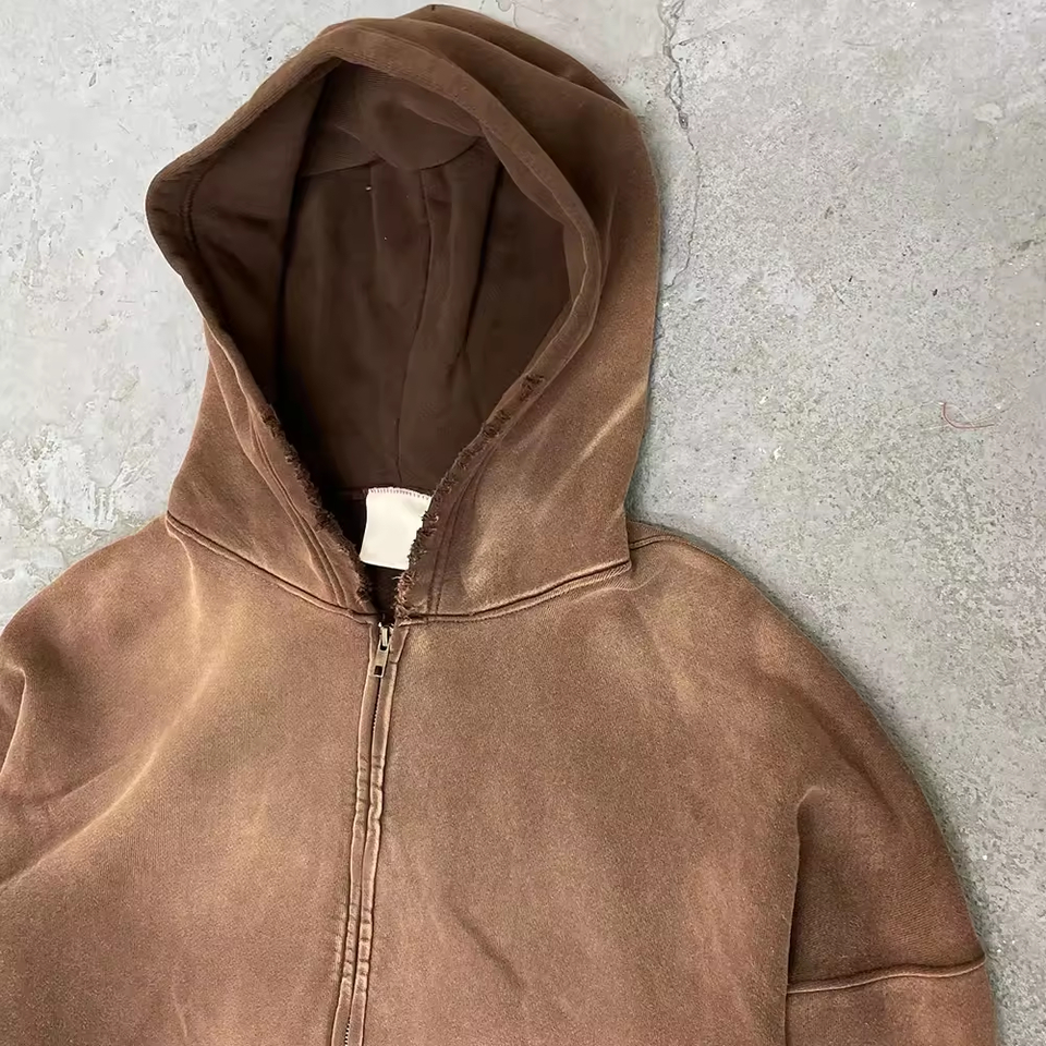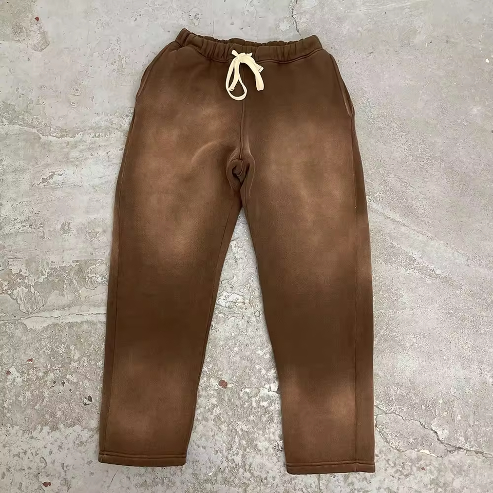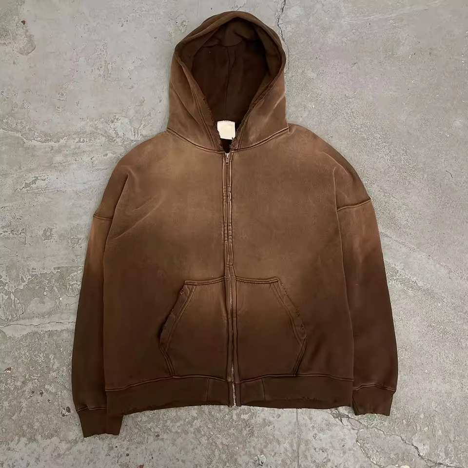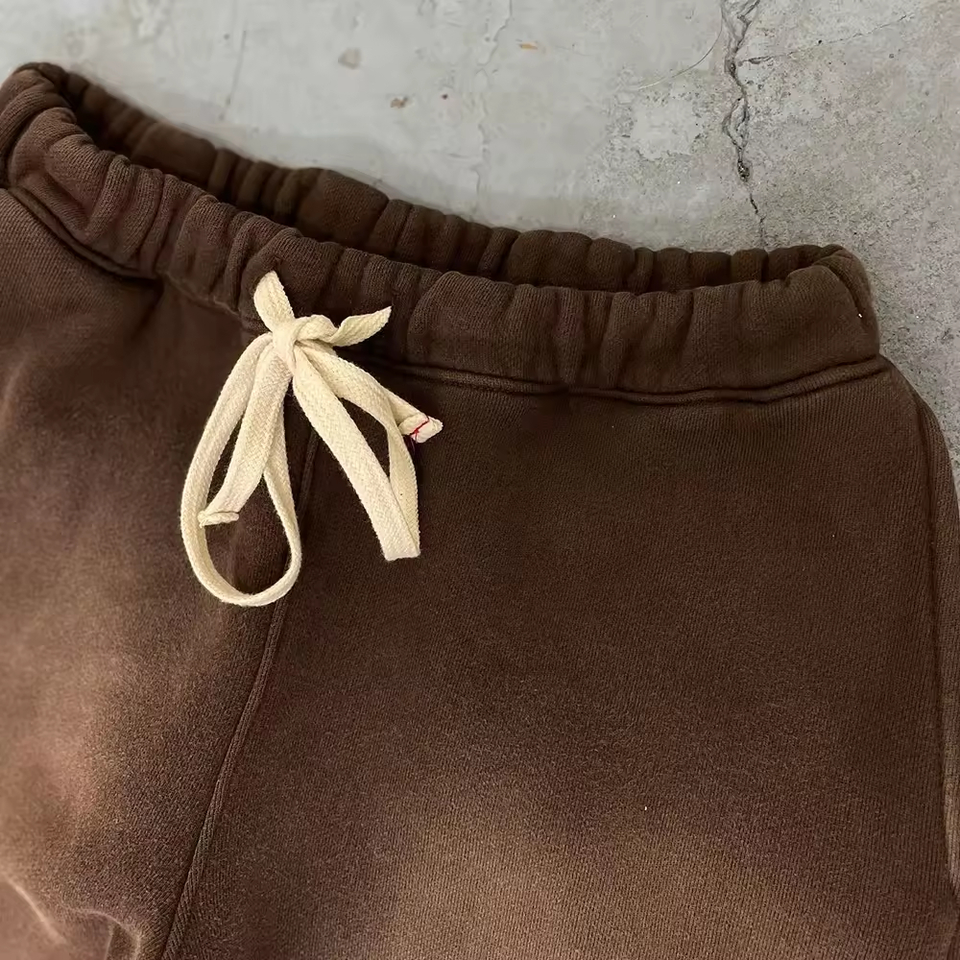 กางเกงขาสั้นผ้าฝ้ายซิปแบบ OEM ODM ลายซันเฟด และชุดเซ็ตเสื้อฮู้ดดี้โอเวอร์ไซส์วินเทจสโตนวอชพร้อมกางเกงขายาว รับทำโลโก้ตามสั่ง