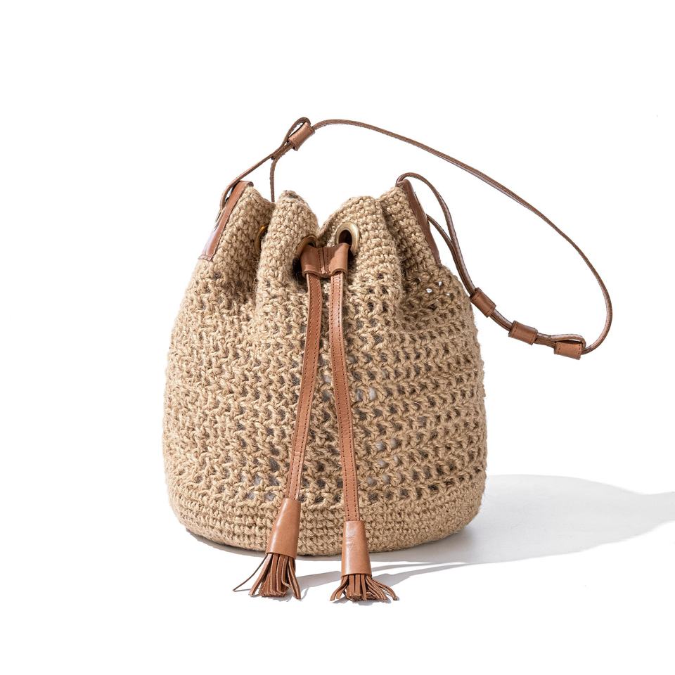 OEM ODM กระเป๋าทรงถังปอกระเจาถักพร้อมด้วยหนังพู่รายการฤดูร้อนที่จำเป็นสำหรับคอลเลกชันชายฝั่งของรีสอร์ทผลิตในบังคลาเทศ