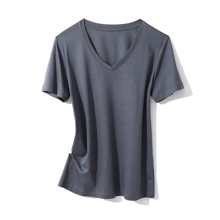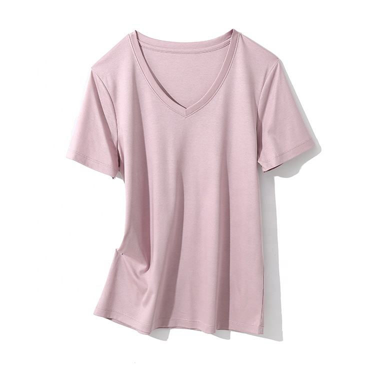 เสื้อยืดคอวีของผู้หญิงเสื้อยืดคอตตอนสำหรับผู้หญิงเสื้อยืดระบายอากาศผลิตตามสั่ง