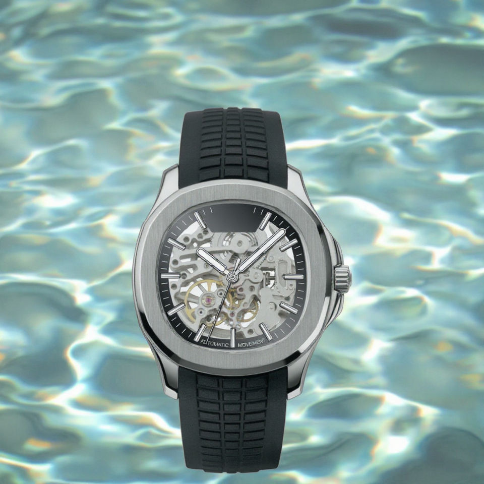 นาฬิกาสปอร์ตอัตโนมัติแบบโครงกระดูก ขนาด 42 มม. สายซิลิโคน สำหรับผู้ชาย ดีไซน์ใหม่ เรืองแสง ตัวเรือนสแตนเลส ผลิตในจีน รับผลิตแบบ OEM ODM พร้อมโลโก้ตามสั่ง