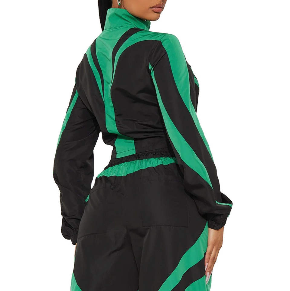 ชุดวอร์มผู้หญิงแบบ 2 ชิ้น OEM/ODM รับทำโลโก้ตามสั่ง เสื้อแจ็คเก็ตกันลมน้ำหนักเบา ผ้าไนลอน ซิปหน้า พร้อมกางเกงขายาว