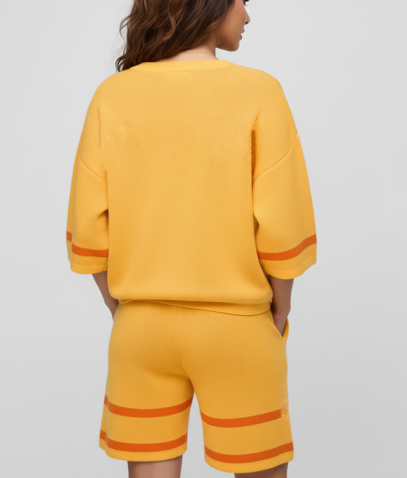 ชุดเซ็ต 2 ชิ้น ผ้าฝ้ายถักแบบโอเวอร์ไซส์ ผลิตตามสั่ง OEM/ODM สำหรับฤดูร้อน น้ำหนักเบา แฟชั่น ระบายอากาศได้ดี ชุดลำลองสำหรับผู้หญิง
