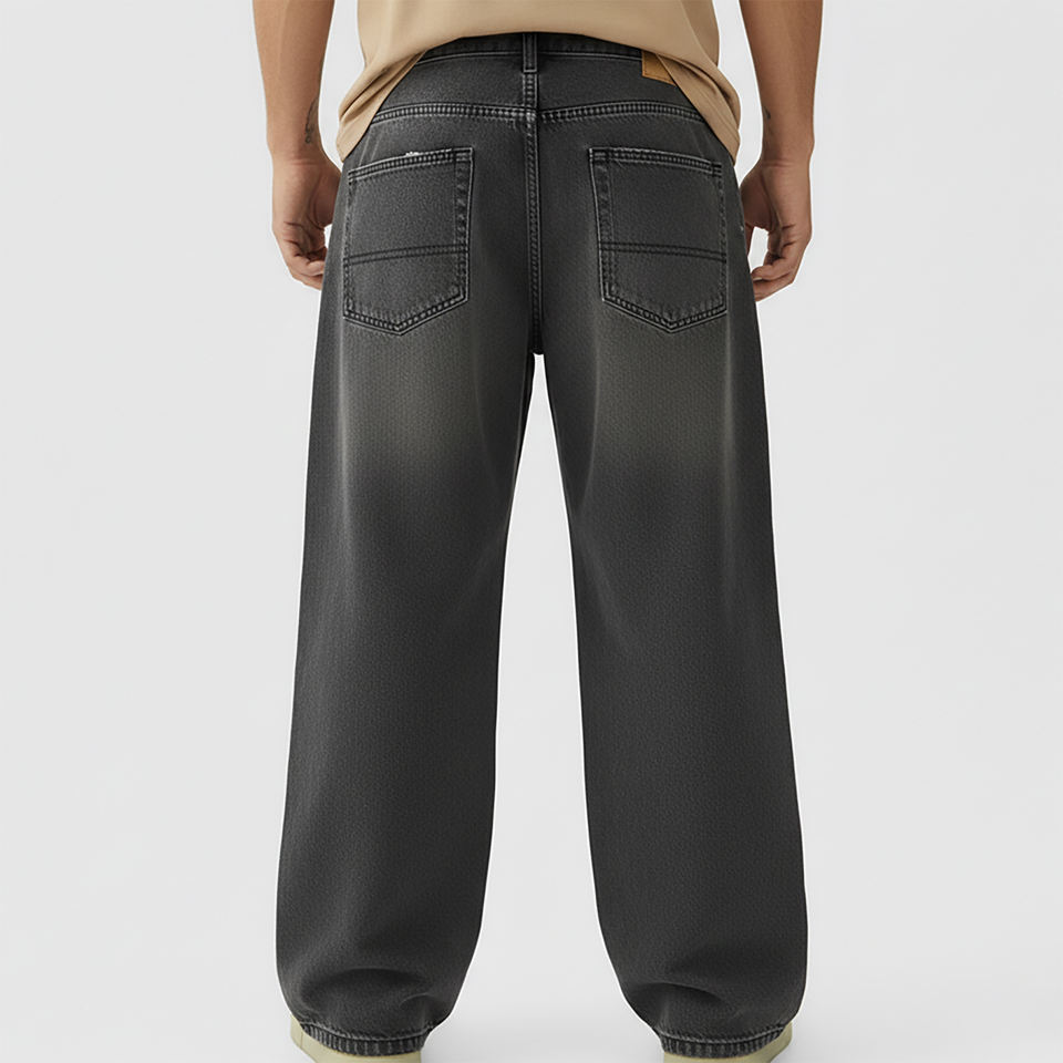 กางเกงยีนส์เดนิมทรงฮิปฮอปแบบสั่งทำพิเศษ OEM/ODM พร้อมแผงกระดุมด้านข้าง แต่งขาดสไตล์ Stonewashed ปักโลโก้แบบ Distressed สตรีทแวร์