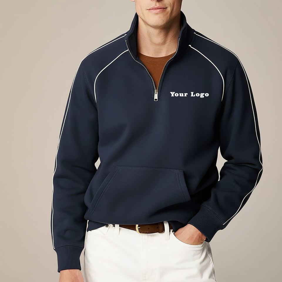 เสื้อฮู้ดดี้โอเวอร์ไซส์แบบหนา ปักลายตามสั่ง OEM/ODM คอซิป ¼ ซิป ตกแต่งขอบเสื้อทั้งหมด สไตล์สตรีทแวร์
