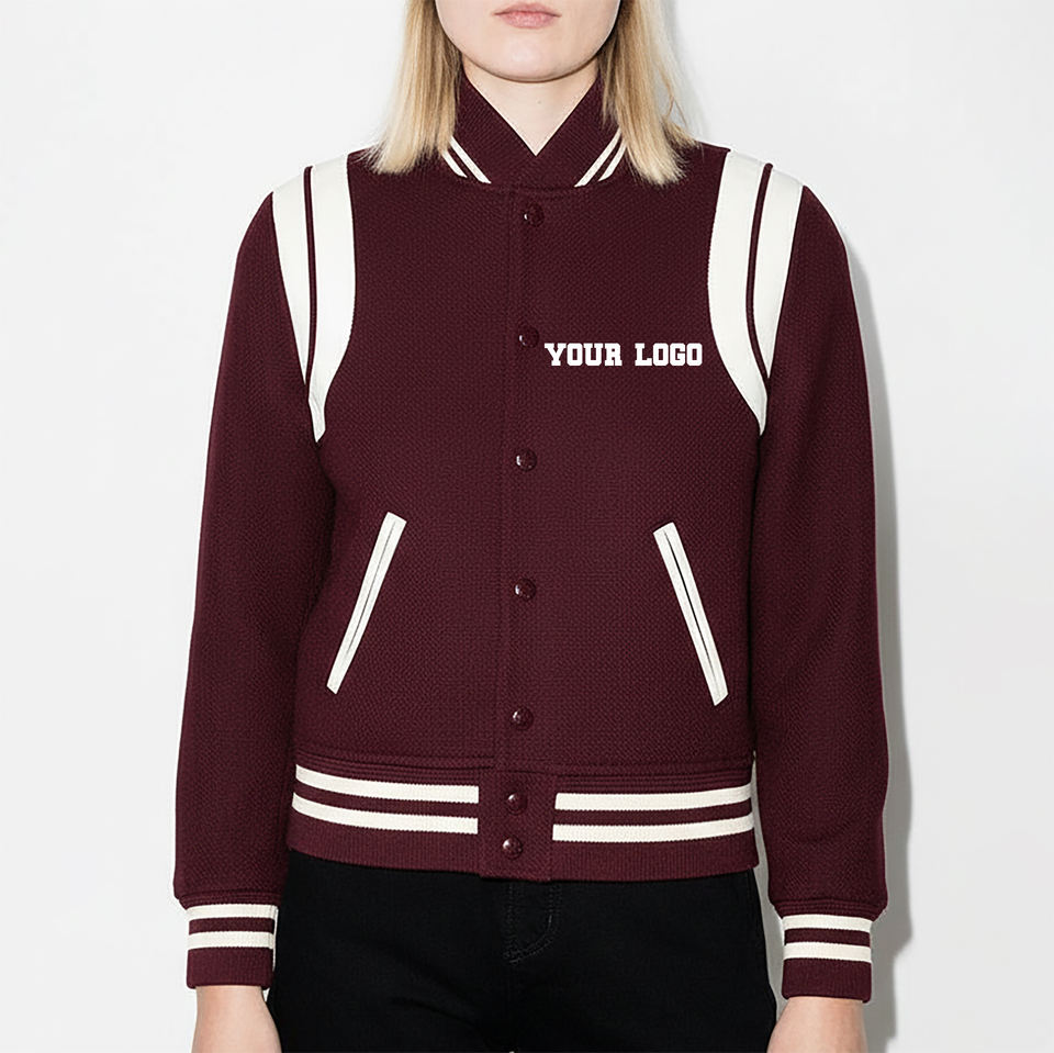 แจ็คเก็ตวาร์ซิตี้แบบสวมใส่สบายสำหรับฤดูหนาว ผลิตตามสั่งแบบ OEM/ODM สำหรับโรงเรียน วิทยาลัย เบสบอล และผู้หญิง
