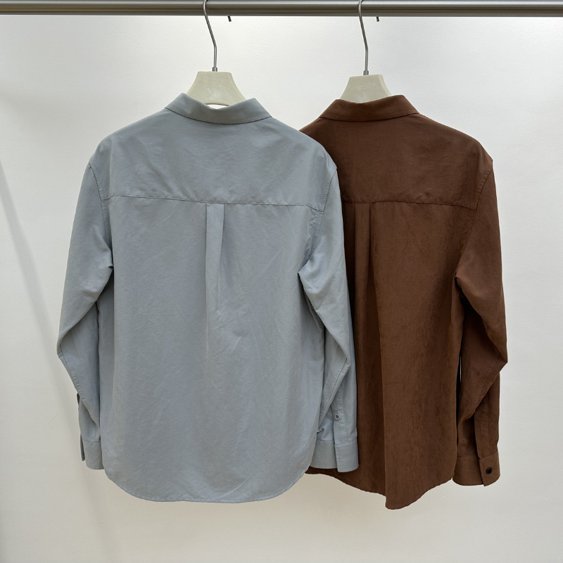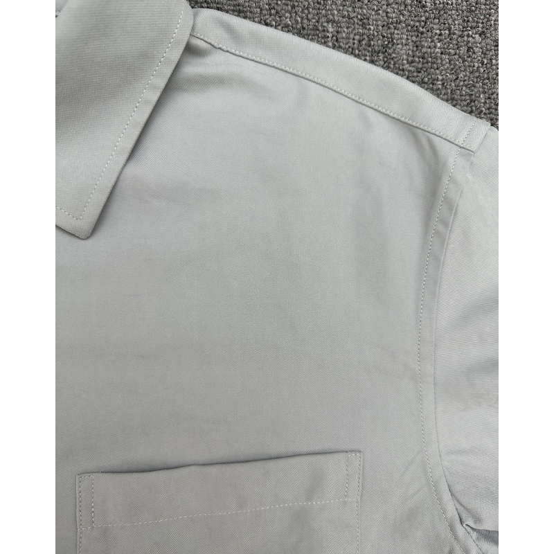 เสื้อเชิ้ตแขนยาวลำลองผู้ชายแบบสั่งทำ OEM ODM ปักลายที่ปกเสื้อ ปกคอพับ ติดกระดุมเม็ดเดียว
