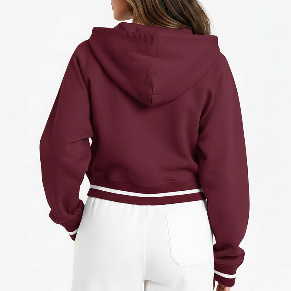ต่อต้านริ้วรอย, แห้งเร็ว, กันน้ำ, ระบายอากาศ, เสื้อฮู้ดครอปท็อปผู้หญิง