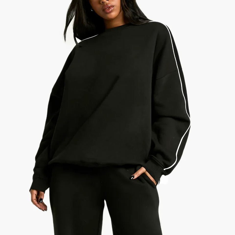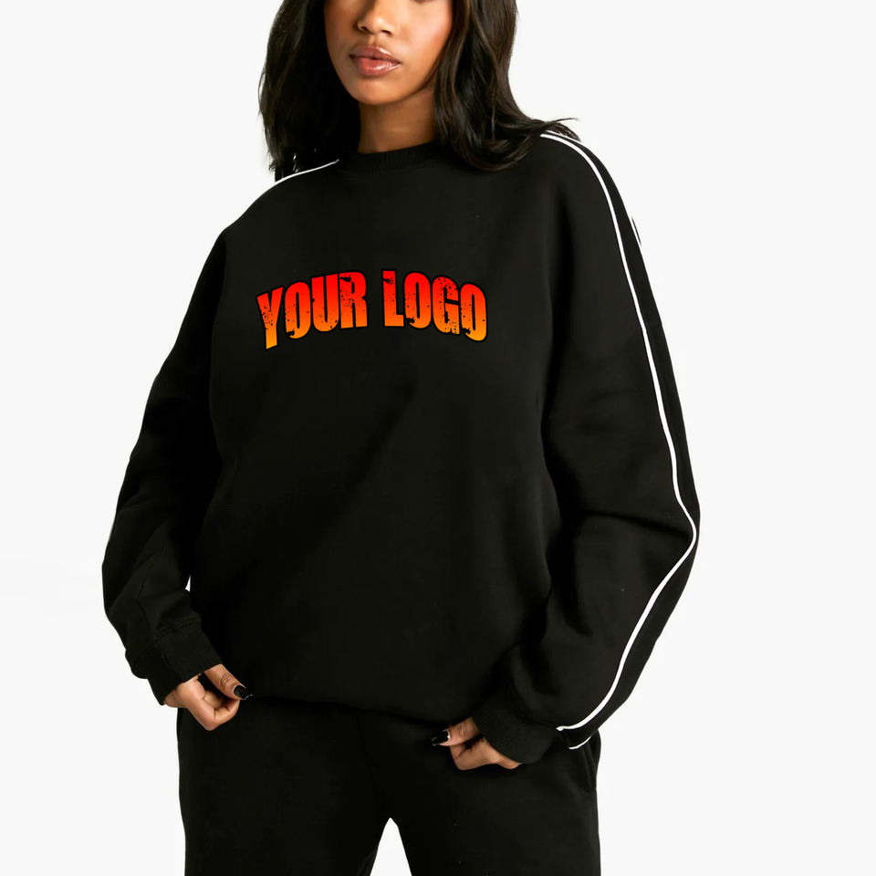 เสื้อสเวตเชิ้ตสตรีทไซส์ใหญ่พิเศษสำหรับผู้หญิงเสื้อสเวตเชิ้ตสำหรับสตรีทแวร์ผ้าฝ้ายลายทางมีโลโก้100% หน้าจอออกแบบได้ตามต้องการ